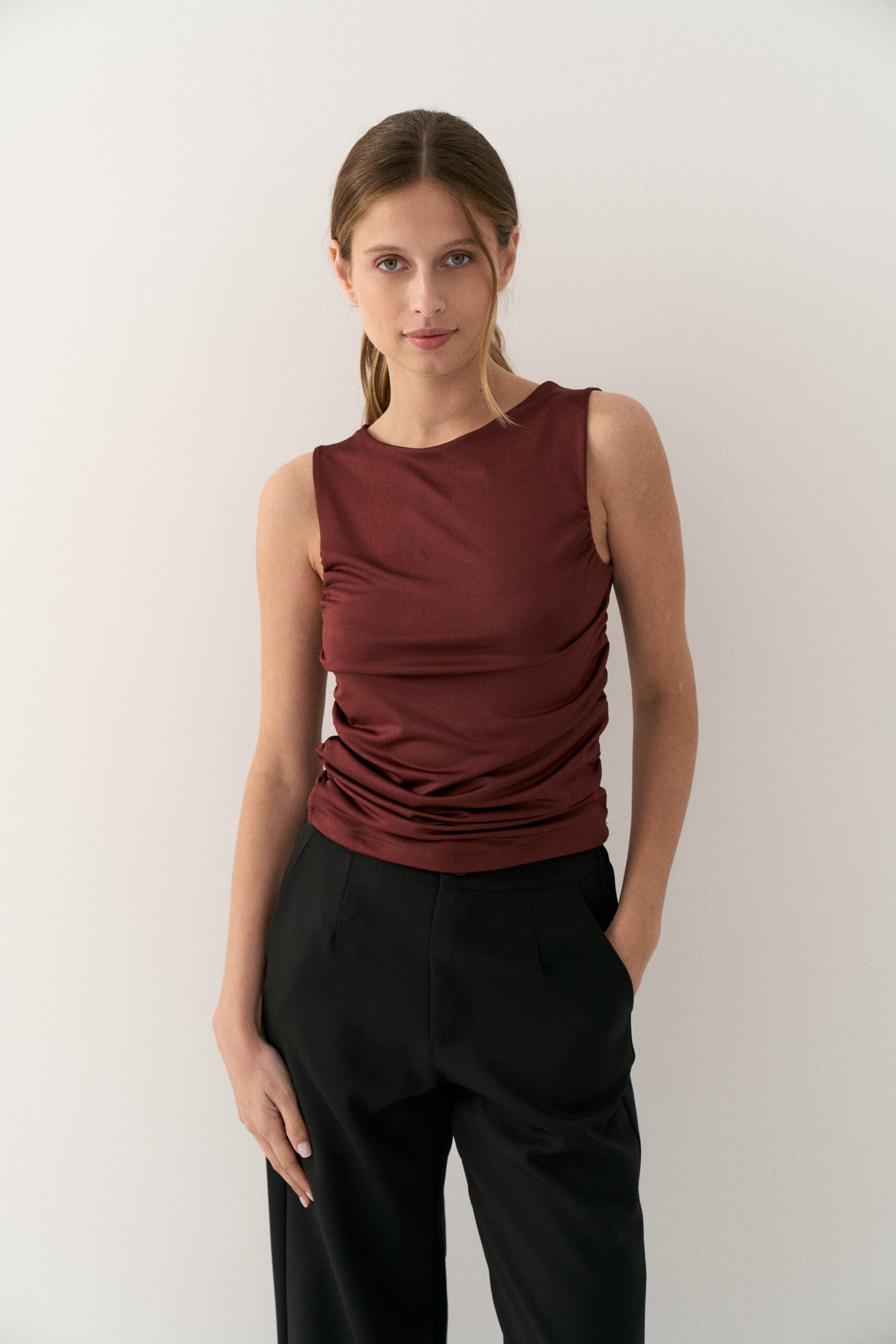 • Top musculosa con frunce a los costados